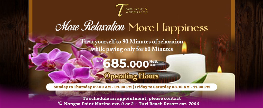 More relaxation, more happiness – treat yourself to 90 minutes of pure relaxation while paying only for 60 minutes.